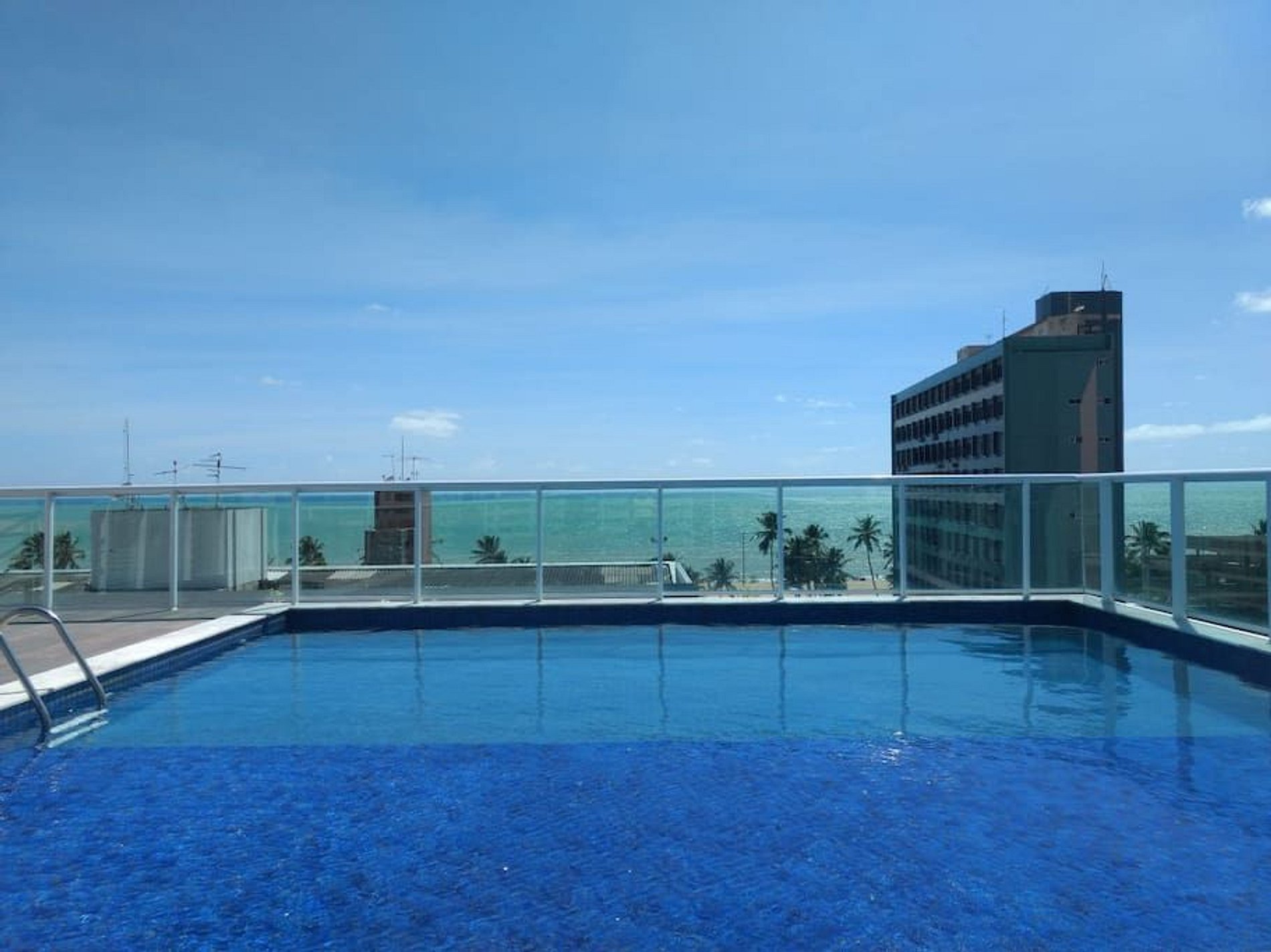 Além do apartamento você terá uma pequena área comercial no térreo, estacionamento ao redor do prédio e garagem no sub-solo, lavanderia coletiva e área de lazer na cobertura que inclui uma piscina com vistas para o mar maravilhosas.