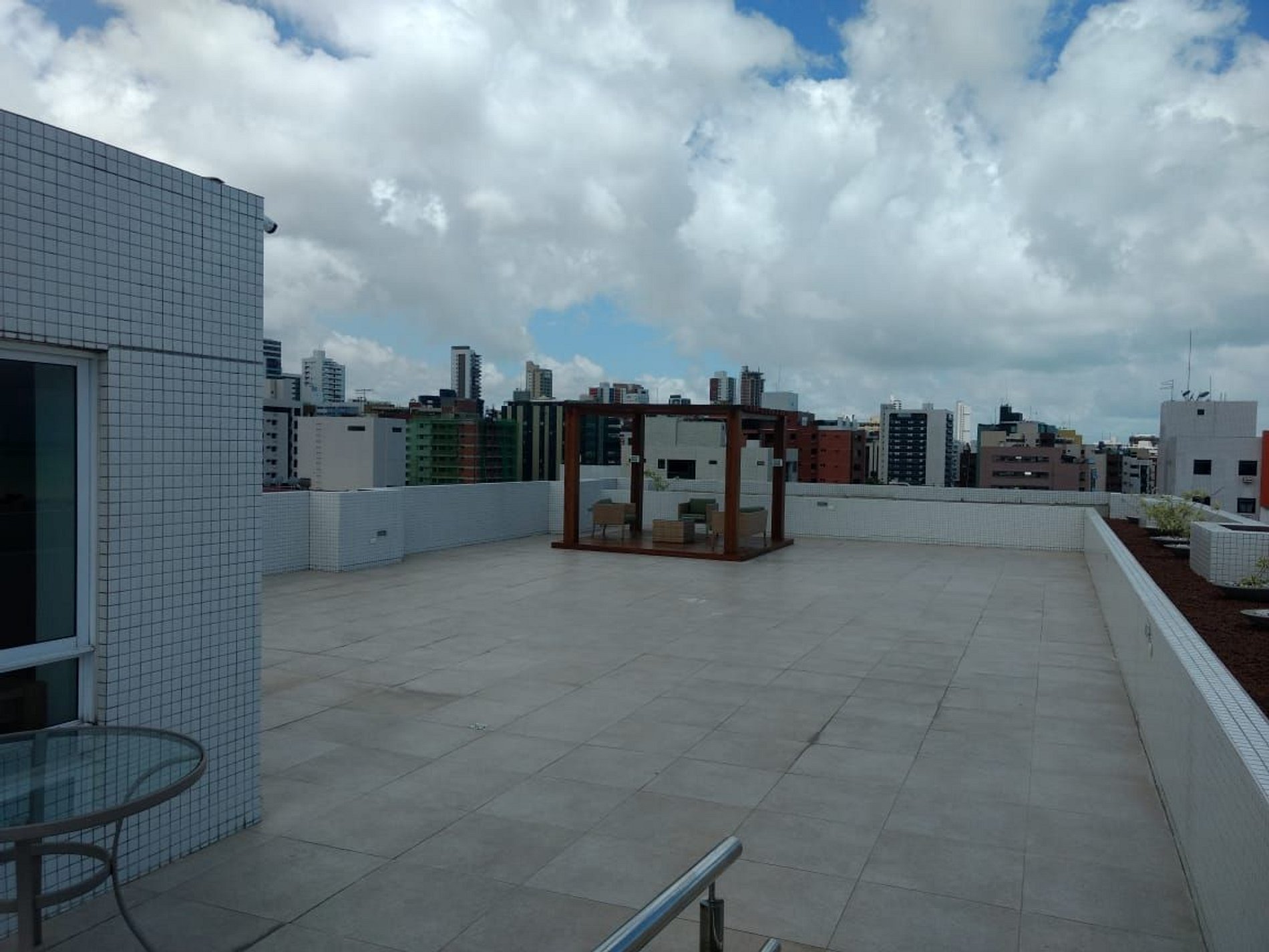 Além do apartamento você terá uma pequena área comercial no térreo, estacionamento ao redor do prédio e garagem no sub-solo, lavanderia coletiva e área de lazer na cobertura que inclui uma piscina com vistas para o mar maravilhosas.