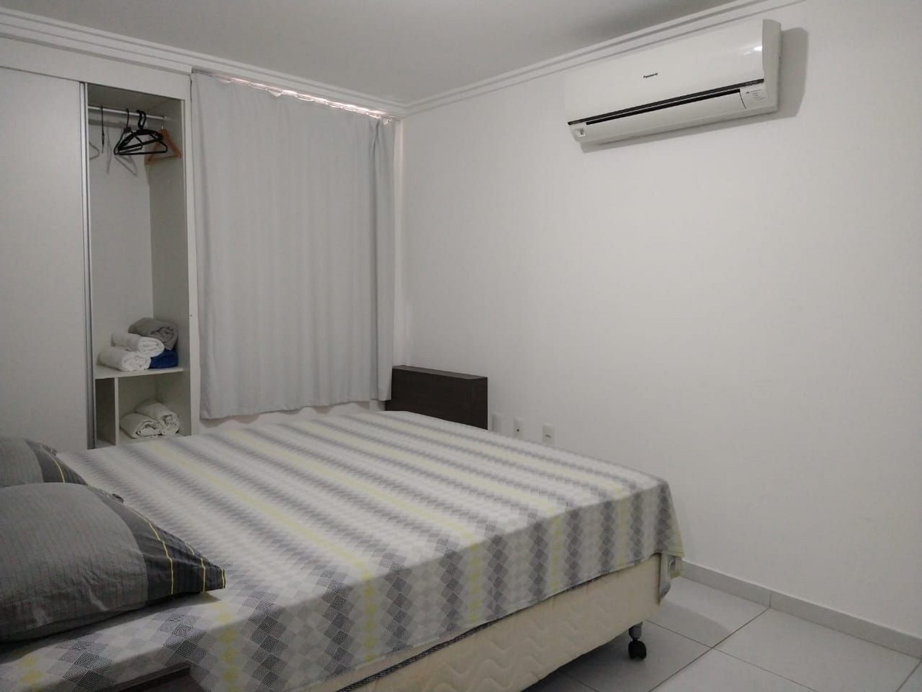 Cozinha completa com todos os utensílios, sala grande com sofá-cama de padrão excelente, smart TV, varanda, mesa e cadeiras para 4 pessoas mais as da varanda, cortinas black-out em todo o apartamento, ar condicionado no quarto e na sala, etc.