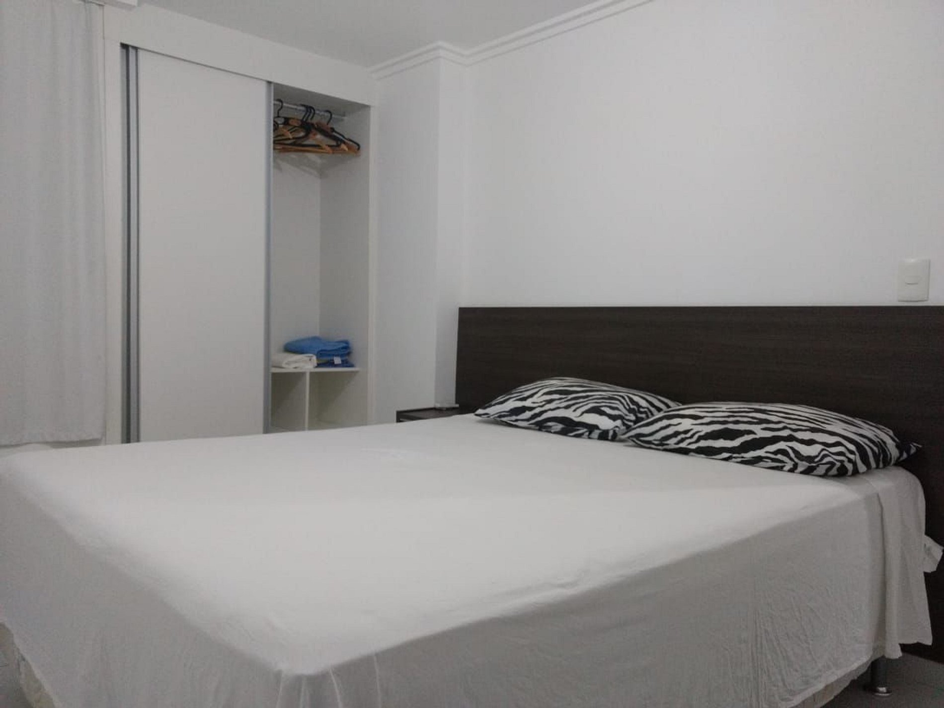 Cozinha completa com todos os utensílios, sala grande com sofá-cama de padrão excelente, smart TV, varanda, mesa e cadeiras para 4 pessoas mais as da varanda, cortinas black-out em todo o apartamento, ar condicionado no quarto e na sala, etc.