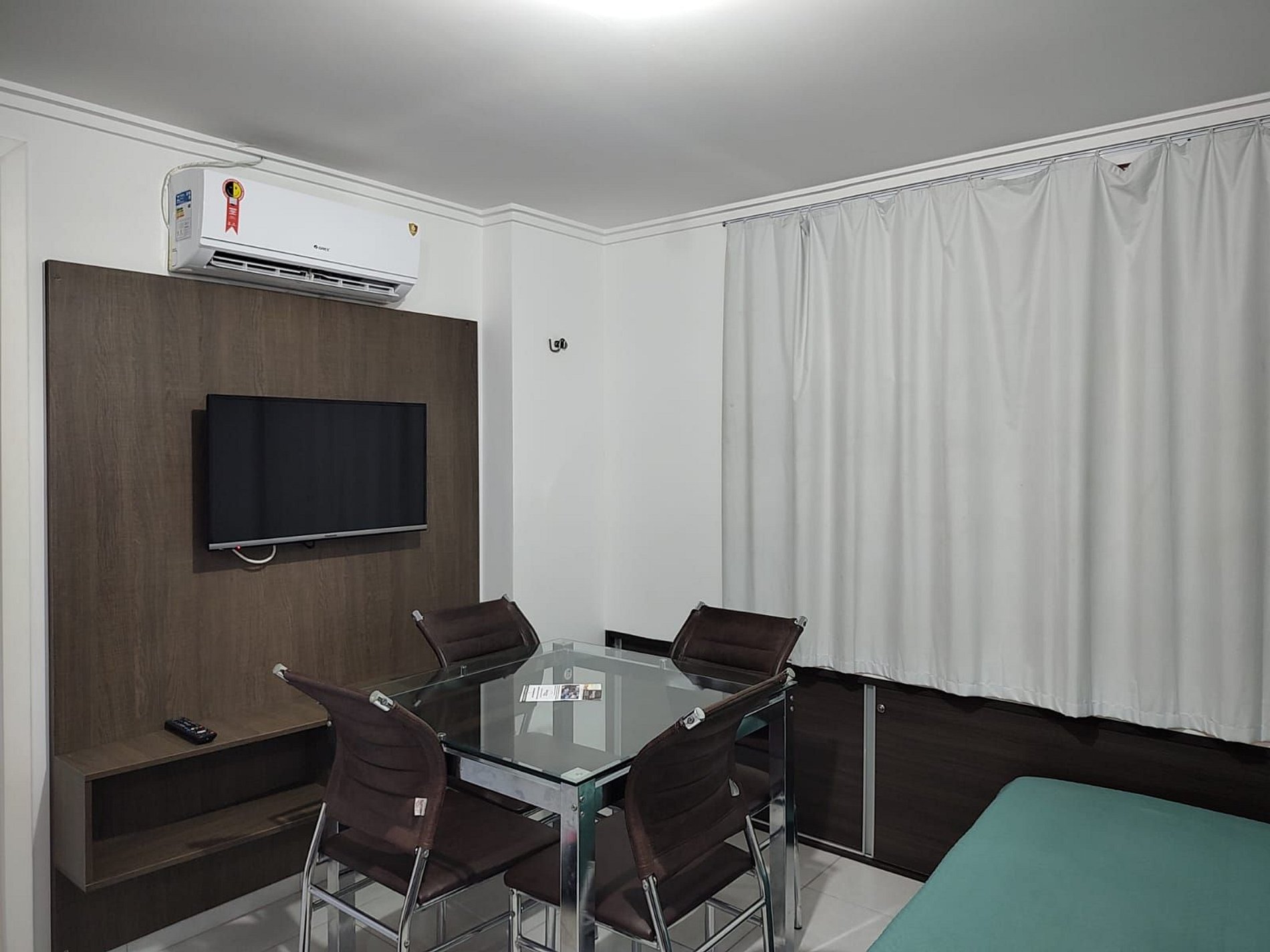 O apartamento tem tudo o que precisa para sua estadia. Cozinha completa, sala com vista para o mar, Smart TV, Ar Condicionado de 12.000 BTU, Sofá-cama e cortinas black-out.