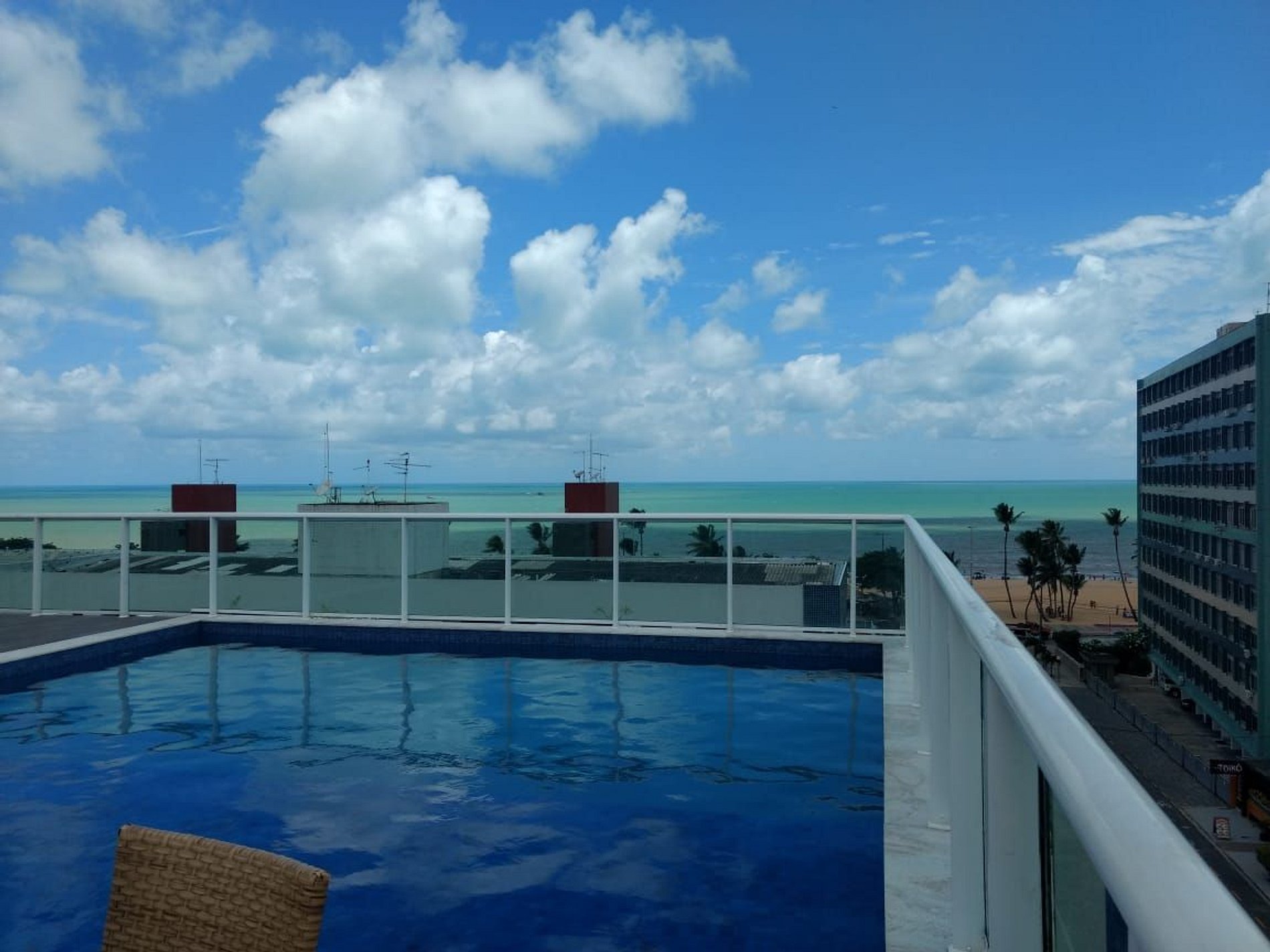 Prédio com portaria 24h., garagem e área de lazer na cobertura com piscina com umas maravilhosas vistas da praia.