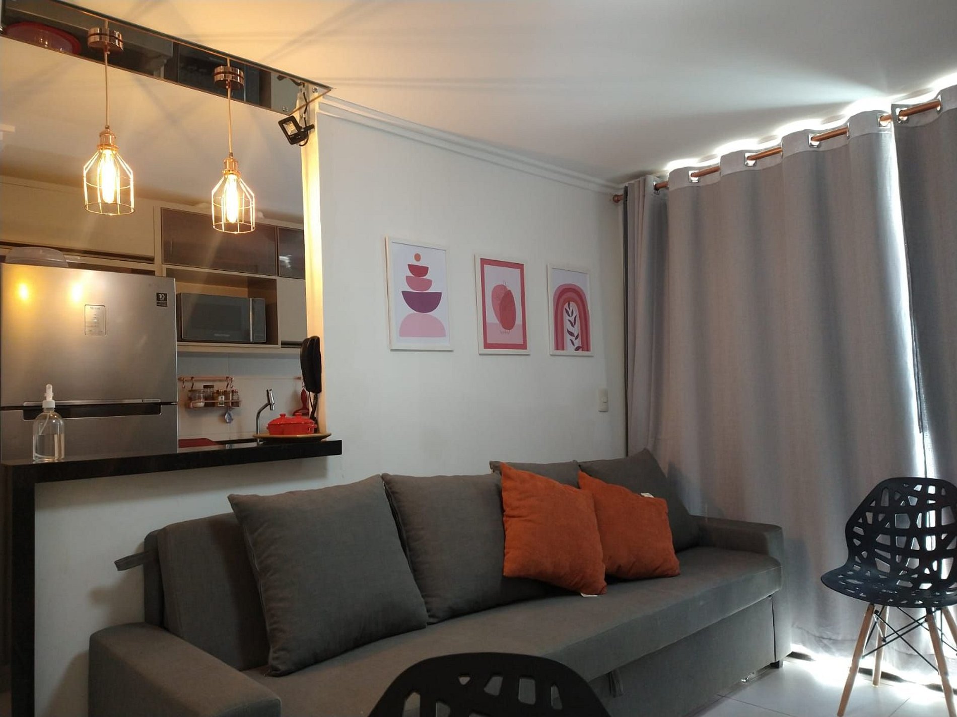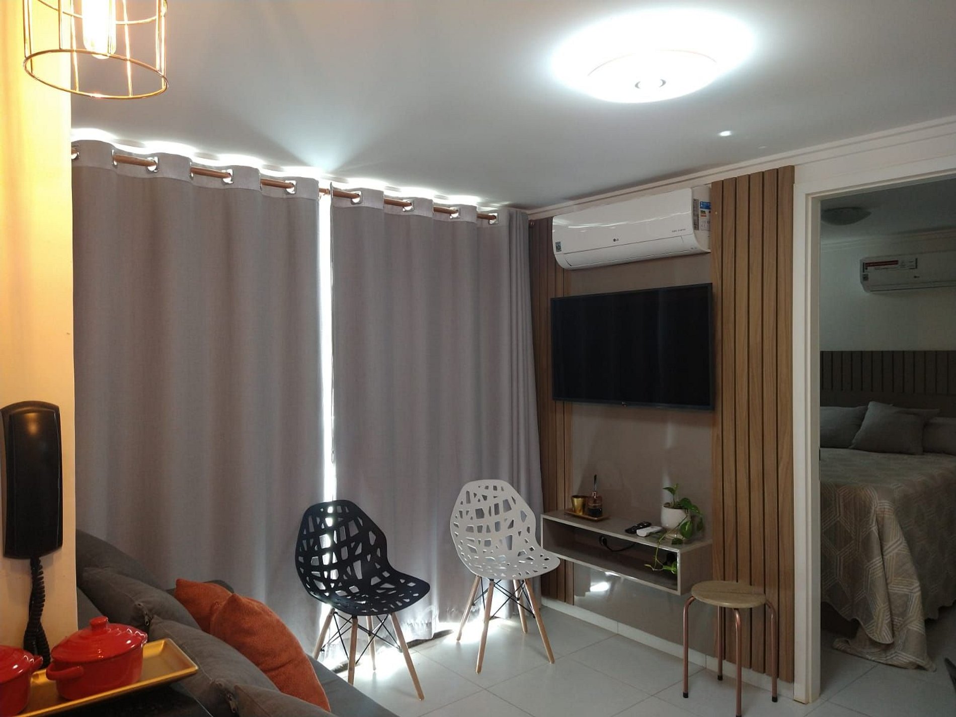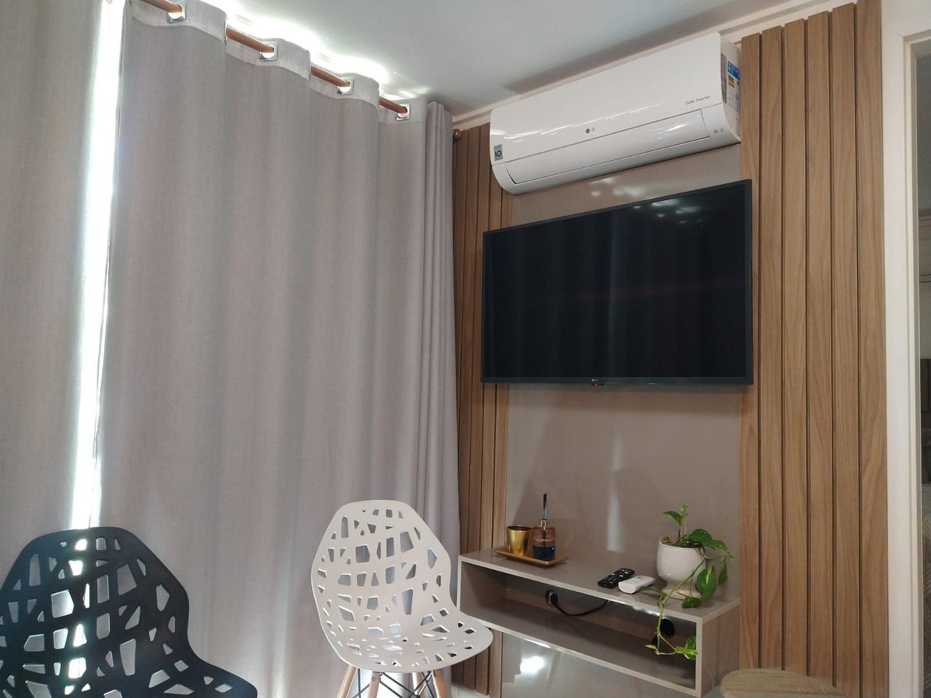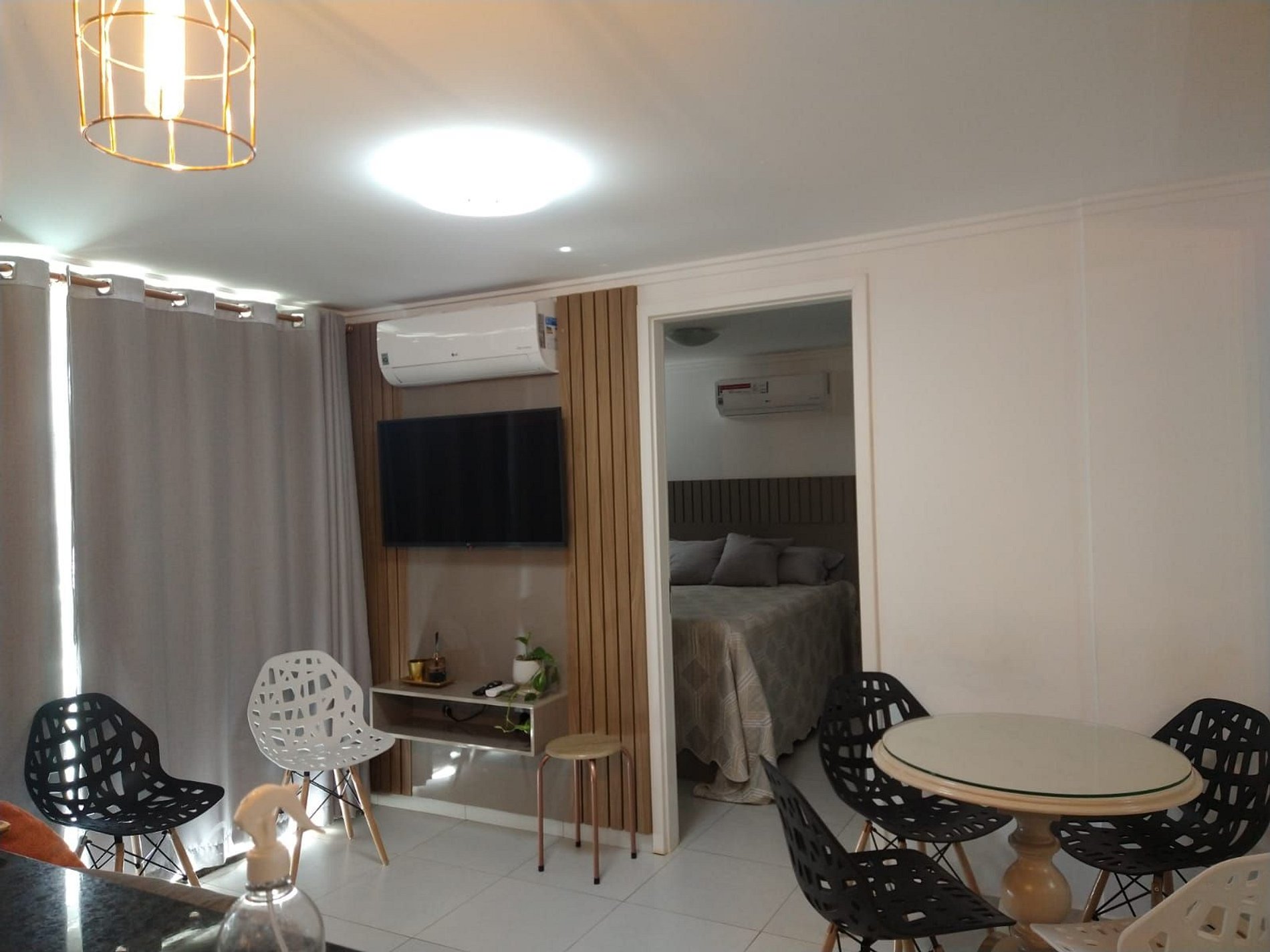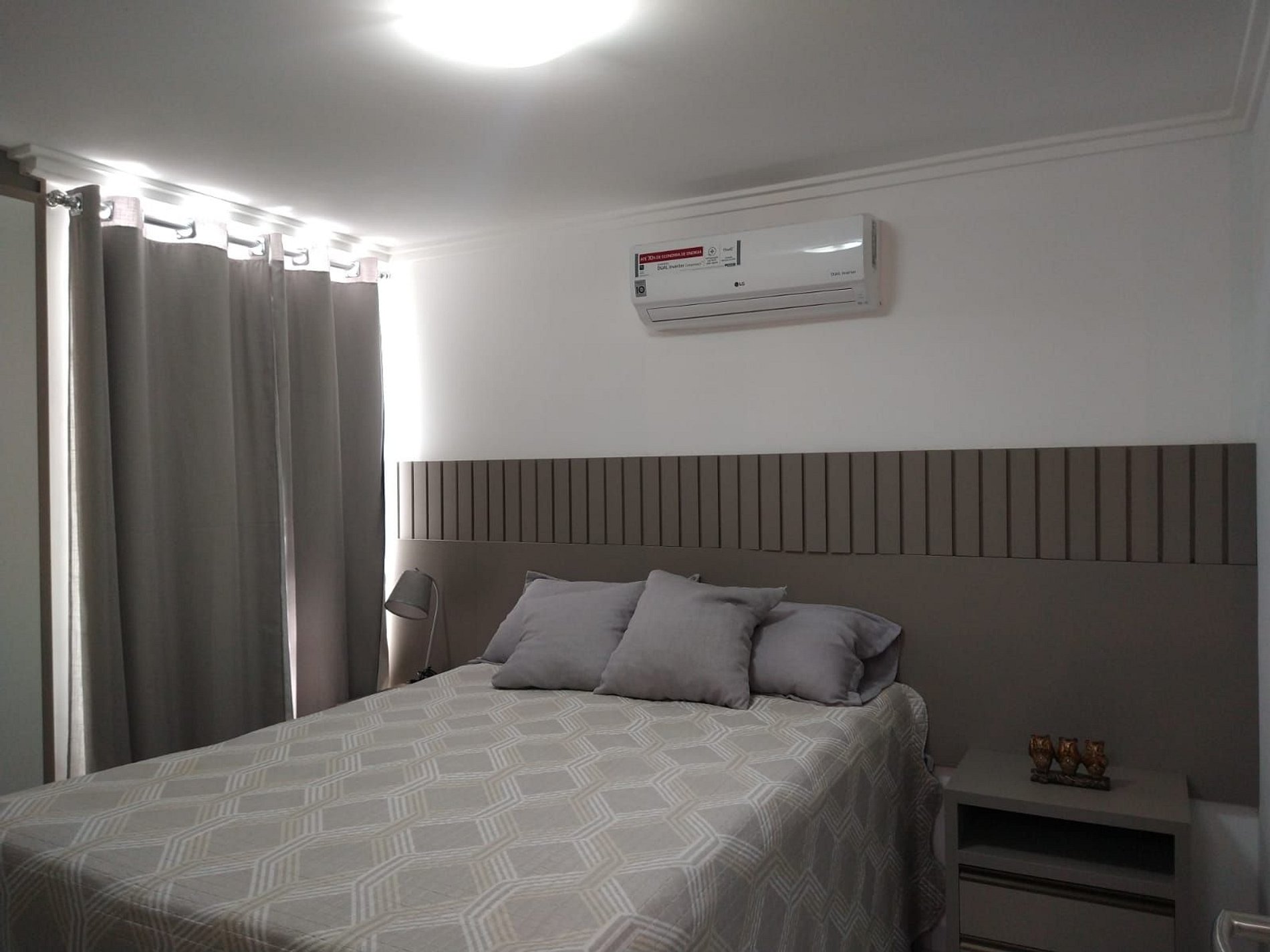 Apartamento com cortinas black-out e ar condicionado em todos os ambientes. Varanda.